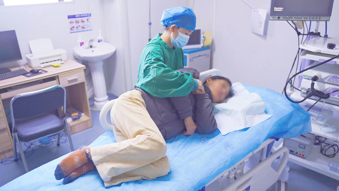 进入诊疗室后,在护士的帮助下,采取左侧卧位,双腿屈膝,全身放松,以便后续检查操作。